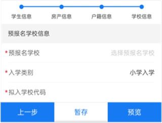 6、选择拟入学校,系统根据选择自动匹配学校代码。完成后点击“预览”。